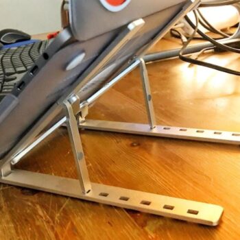 My neck has been bothering me when using my laptop, since I spend hours video editing. This little stand has been a lifesaver. I even take it to coffee shops and other places I work. The stand folds up very small and is nice and durable. It has really helped out and my neck no longer is in pain. I did get a bluetooth mouse and keyboard that I use when it is propped up on the stand.
