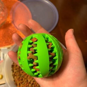 Fill up the rubber ball with some of your dog’s food or some bite-sized dog treats and play fetch. The catch-and-reward system that you can build between you and your pet can create a foundation of trust and obedience. This ball is great for your play time with your dog and can help build a bond unlike any other. With on purchase, you get 1 random color Dog Toy Feeder Ball.