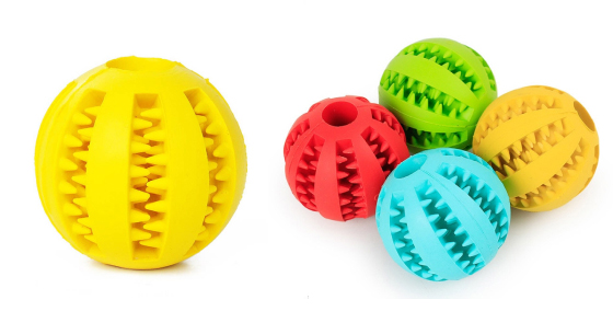 Unlike other ordinary dog toys made from low-quality rubber, our rubber is elastic while resisting bites and tears from the most aggressive of canine mouths. The material is non-toxic and non-abrasive for safe biting. The ball is available in four colors: red, blue, green, and yellow.