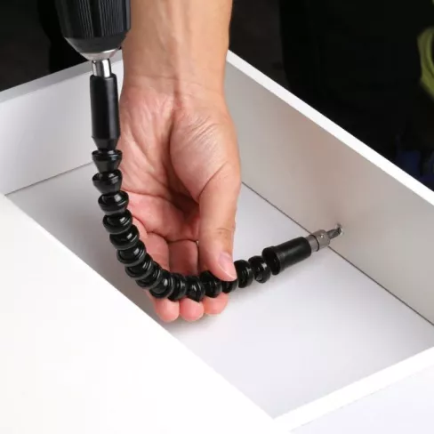 It can be flexible, it can be bent to any shape. Lately I've been drilling pictures and tables, when I didn't have this extension bit drill, there were screws that I was very hard to drill because I didn't have the right position. Now when I'm not in the right posture, I can still drill very easily and comfortably. It is very sturdy, I fear it will slip out of the drill but not. It works better than I thought and expected. In general there is nothing to criticize.