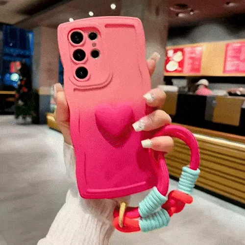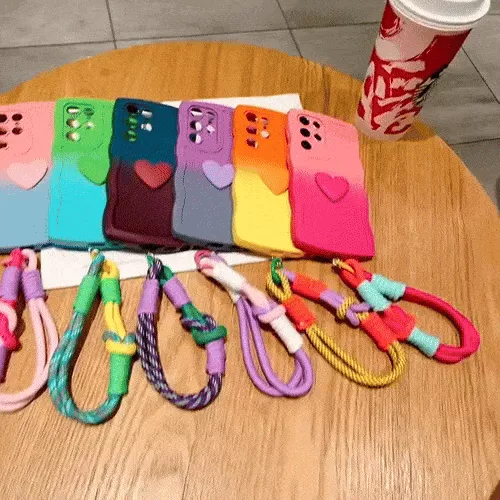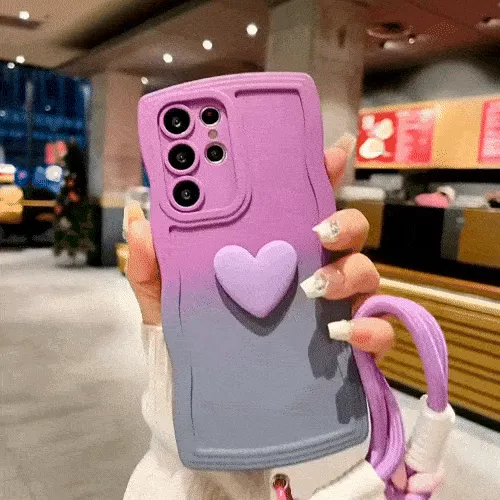 What sets the Gradient Love Wave Case apart is its unique blend of aesthetics and functionality. The eye-catching gradient design, coupled with the love wave pattern, makes your Samsung stand out in a sea of monotony. The inclusion of a woven drawstring wrist strap not only adds a fashionable touch but also enhances your phone’s accessibility and security. Crafted with high-quality electroplated silicone, this case promises durability and comfort in every touch. It’s not just a case; it’s an extension of your personality.