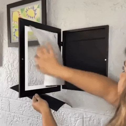 Wow, such a neat and handy way to display my kid's artwork! The magnetic front is so easy to use - no more fumbling with clips or tape. It looks great on our wall too. 👍