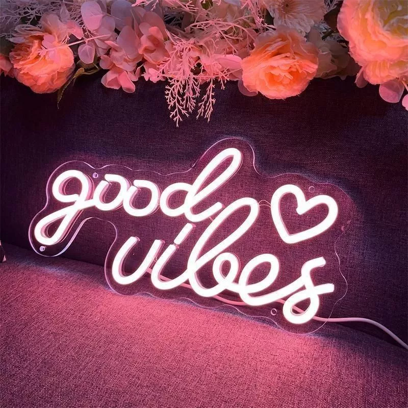 LED Neon “Good Vibes” Sign for Beauty, Gaming, and Party Decor