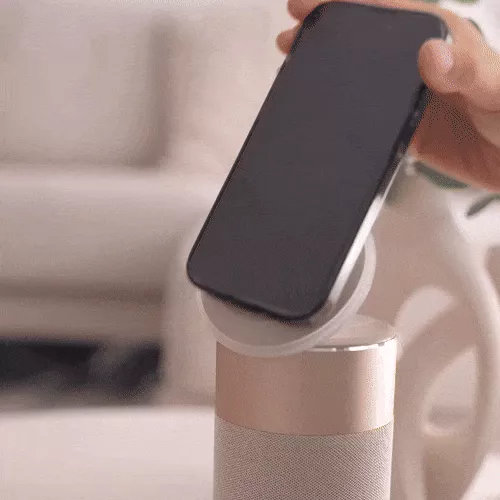 Make the most of your devices with our 2-in-1 Wireless Charger & Bluetooth Speaker. Whether you’re charging at home or need a soundtrack for your next gathering, this device ensures your tech needs are covered. Its sleek, cylindrical design not only saves space but also complements any décor. Not waterproof, it’s ideal for indoor use where it can stay protected and continue to perform its best.